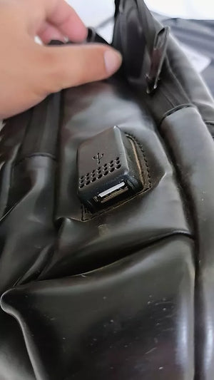 Sí, el bolso tiene un puerto de carga USB que te permite mantener tus dispositivos cargados fácilmente.